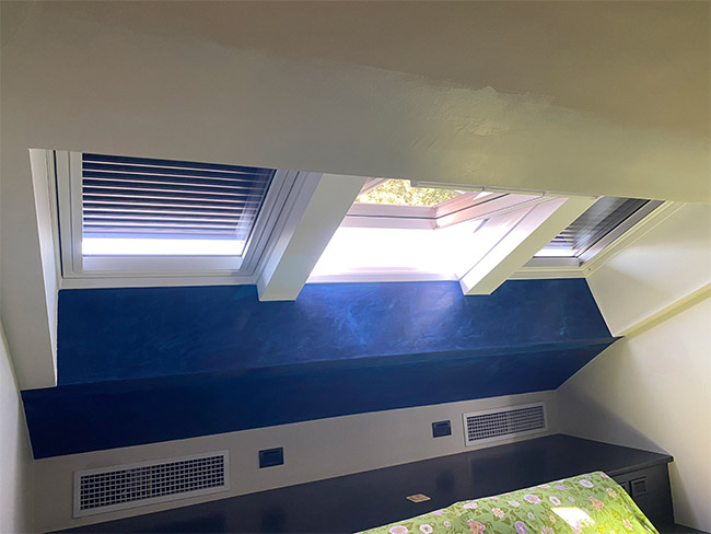 Questa era l’esigenza di un cliente che, nel suo appartamento con camere mansardate, aveva delle grandi aperture zenitali a cannocchiale, realizzate in ferro/acciaio e non isolate.